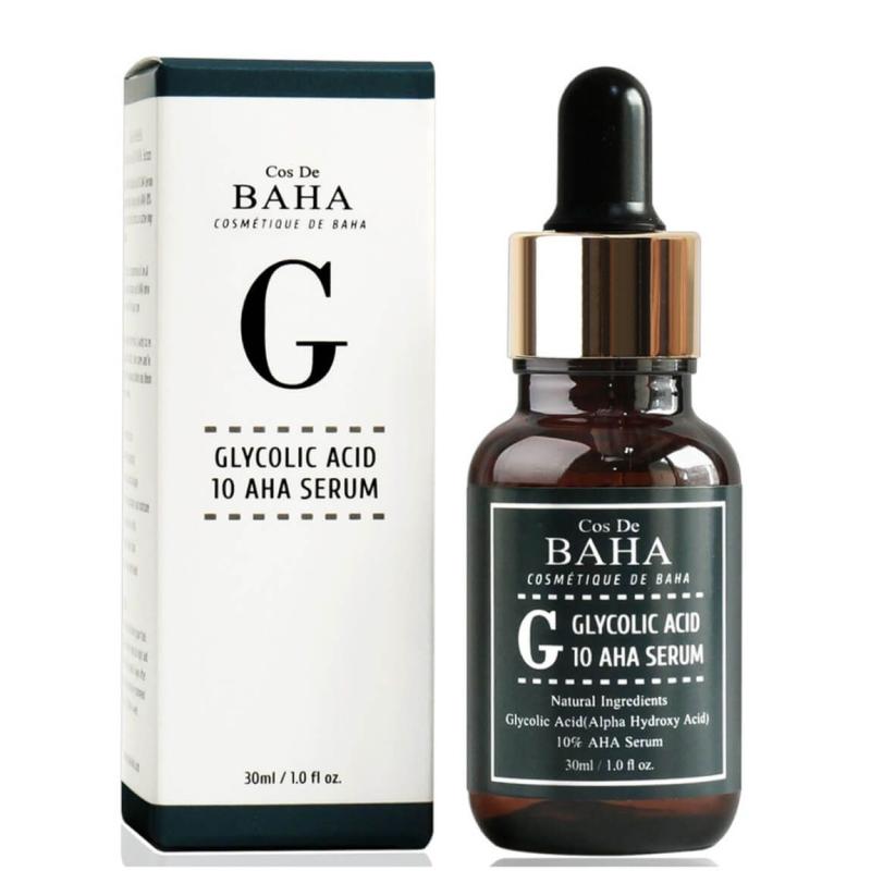 - Cos De BAHA Glycolic Acid 10% AHA Serum is a high-strength chemical exfoliant formulated to improve skin clarity, smoothness, and brightness. It works by gently dissolving dead skin cells on the surface, helping to unclog pores and refine uneven texture.