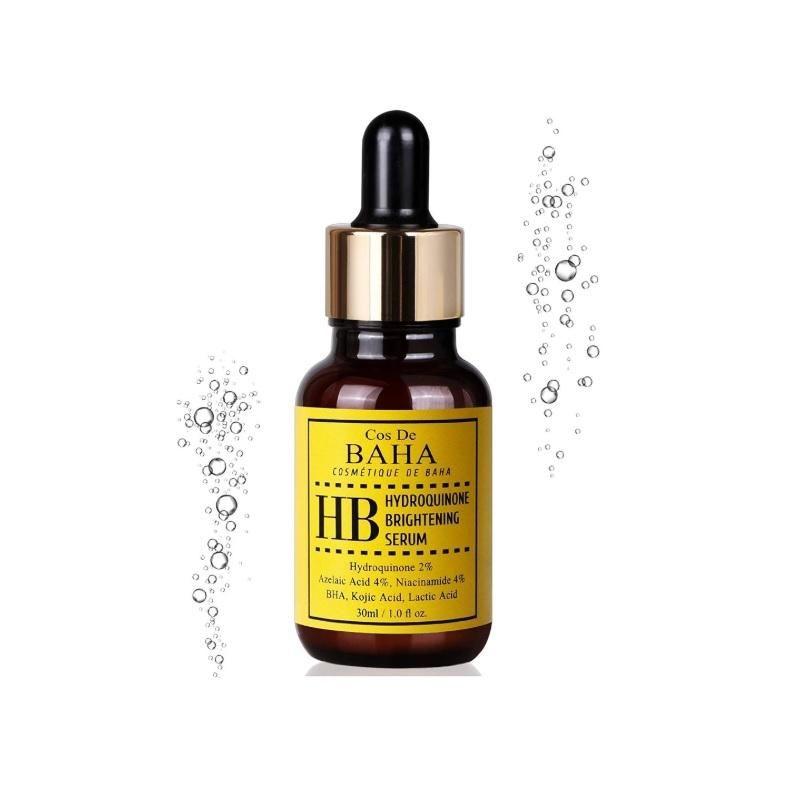 - The Cos De BAHA Hydroquinone Brightening Serum is a specialized skincare treatment designed to help visibly improve the look of hyperpigmentation, dark spots, and uneven skin tone. It is commonly used as part of a targeted skincare routine for individuals seeking a more balanced and refined complexion.