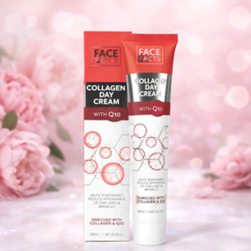 - FaceFacts Collagen & Q10 Replenishing Day Cream is formulated to provide everyday hydration while supporting skin firmness and vitality. Collagen helps improve the appearance of skin elasticity, while Coenzyme Q10 (Q10) is known for its antioxidant properties that help protect the skin from environmental stressors.