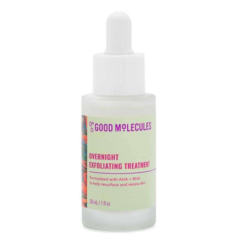 Reveal smoother brighter skin overnight with the Good Molecules Overnight Exfoliating Treatment Formulated with a powerful blend of AHAs and BHA this gentle yet effective treatment helps refine texture unclog...