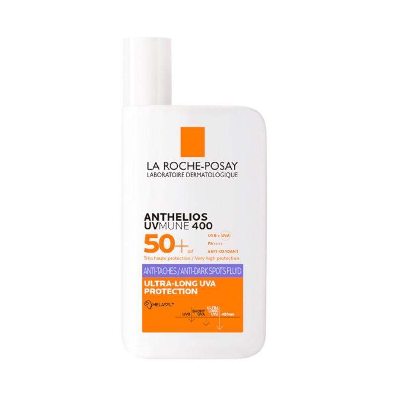 La Roche-Posay Anthelios UVMune 400 Anti-Dark Spots Fluid SPF50+ is an advanced facial sunscreen formulated to protect the skin from harmful UVA and UVB rays, including ultra-long UVA rays that contribute to premature aging and dark spot formation.