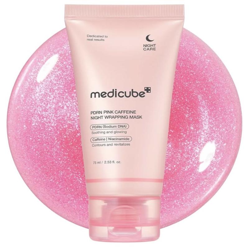 - Medicube PDRN Pink Caffeine Night Wrapping Mask is a premium overnight mask that works while you sleep to restore and refresh your skin. It forms a lightweight “wrapping” layer over the skin, helping to lock in moisture and active ingredients for long-lasting hydration and visible skin improvement by morning.