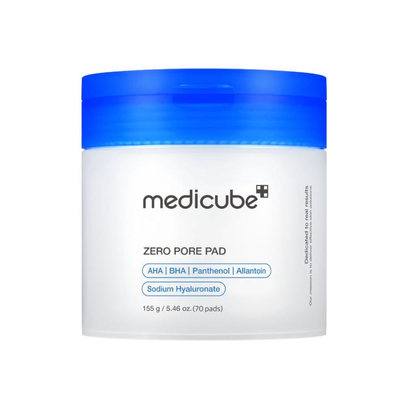 Medicube Zero Pore Pad is a daily exfoliating toner pad formulated to deeply cleanse pores, control excess sebum, and improve overall skin texture. Featuring a dual-sided design, one side gently exfoliates away dead skin cells while the other smooths and hydrates the skin, leaving it refreshed and balanced.